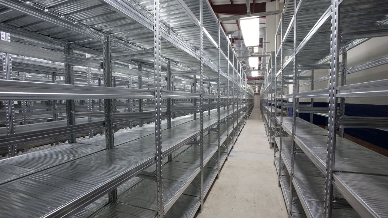 Regálový systém pro profesionální skladování, lze využít od obchodů až po kanceláře